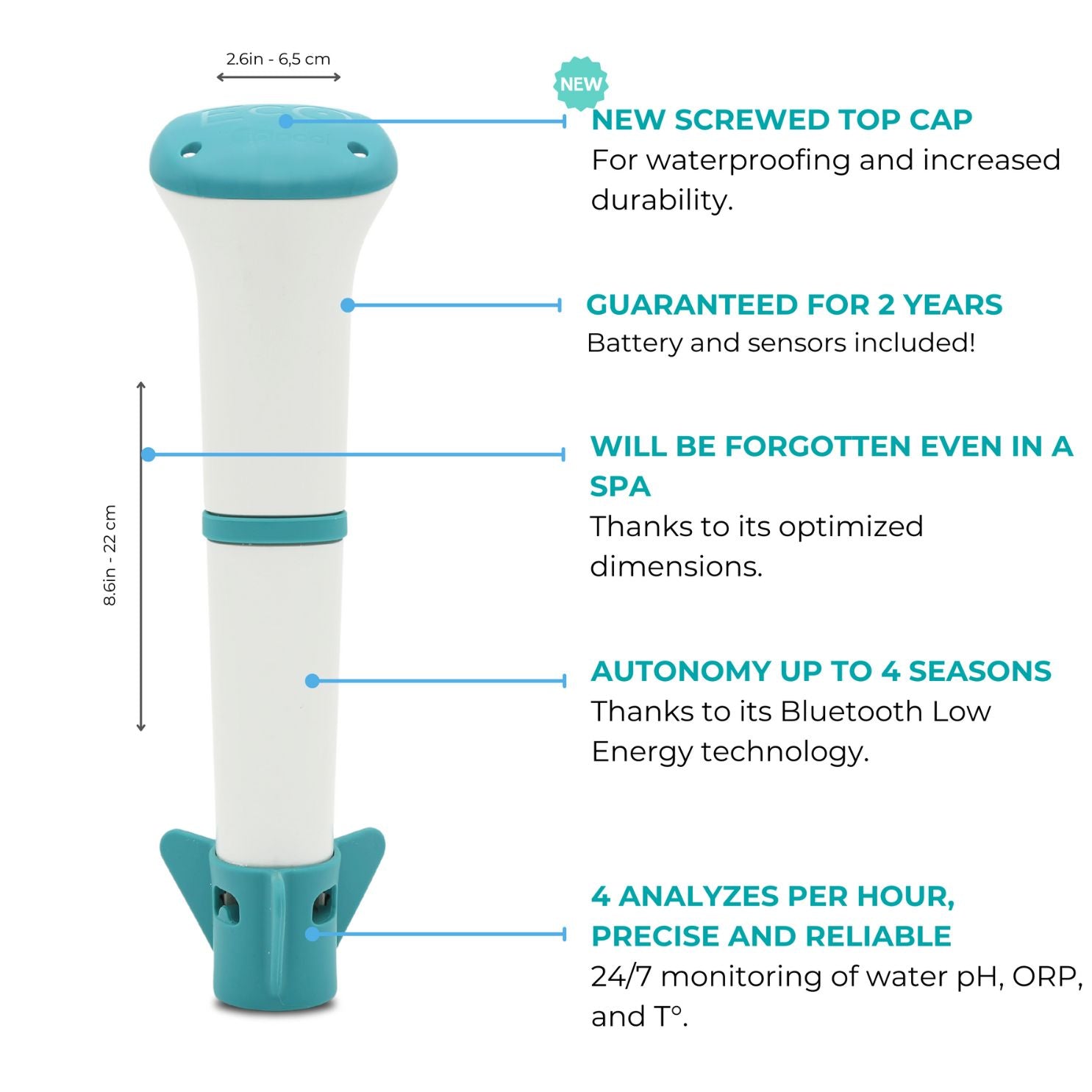 Tired of the hassle of pool or spa maintenance? Say hello to EcO - your new smart, connected pool analyzer, designed to simplify and streamline your pool & spa care routine all from a phone app. With EcO, maintaining your pool or hot tub has never been easier or more convenient.