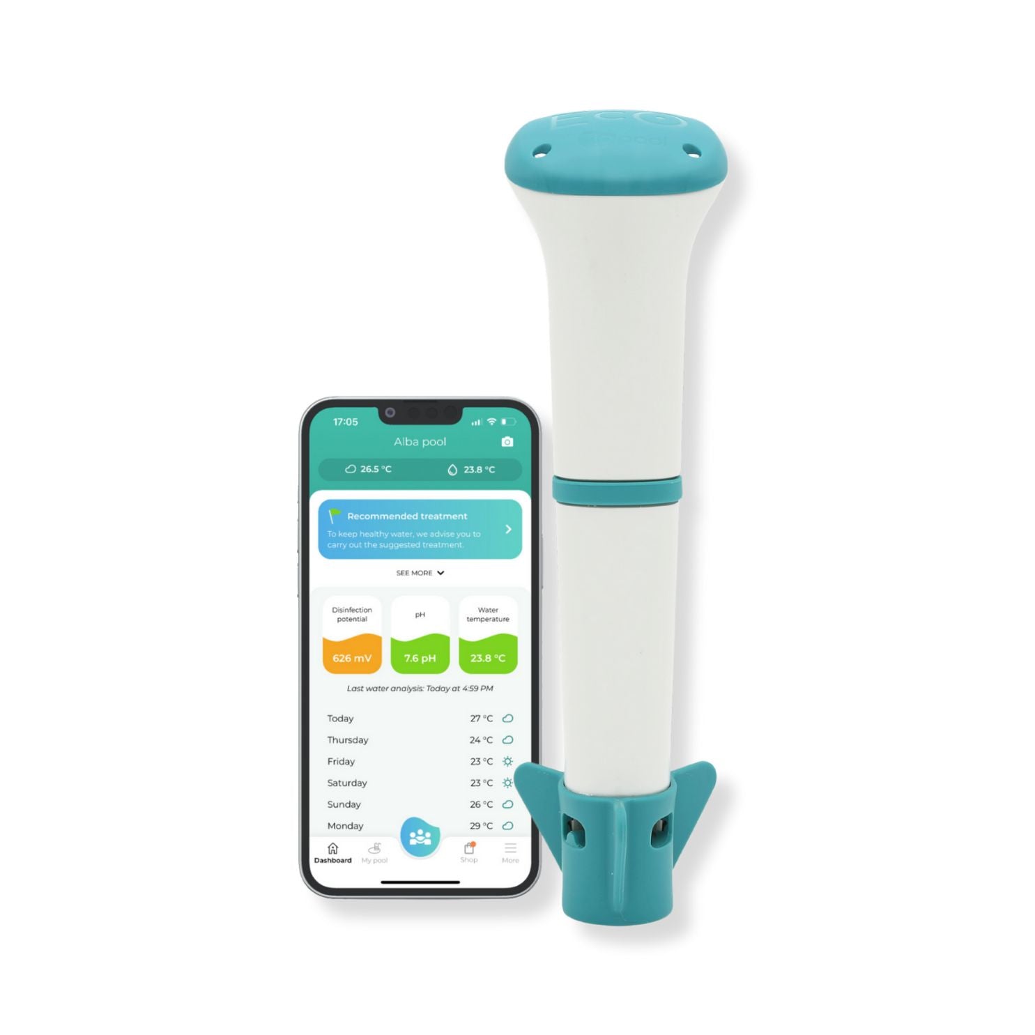 - Free access to the iopool app, offering personalized maintenance recommendations based on EcO's data.
