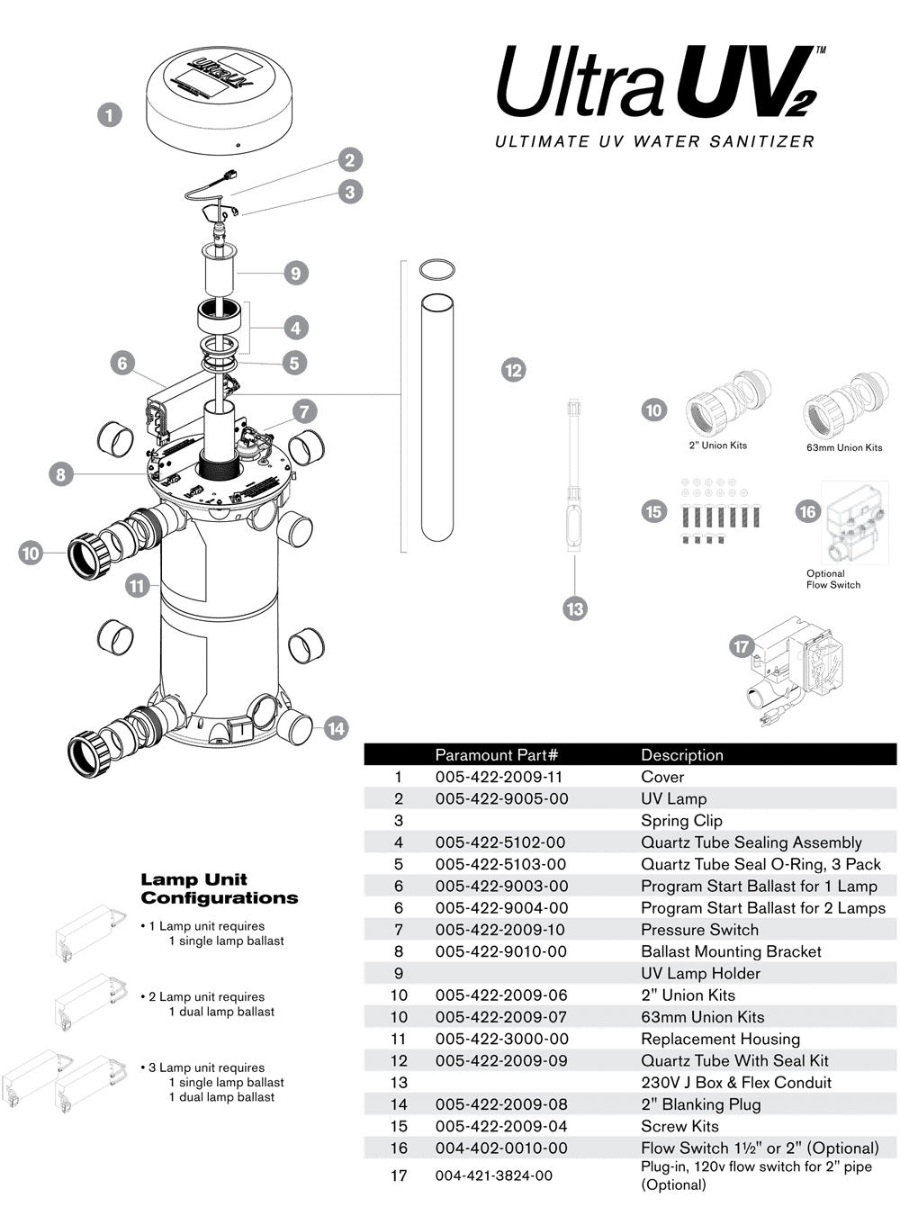 Kit de tubes à quartz Paramount Ultra UV2 [005-422-9010-00]