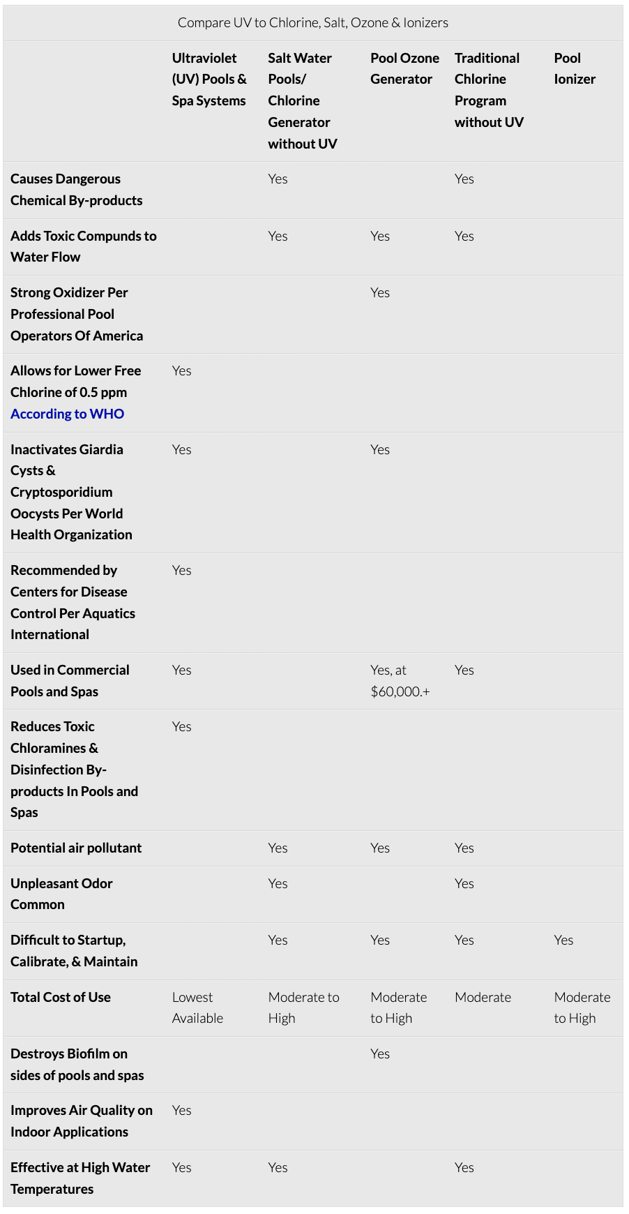 Although the end goal of both UV and ozone is a cleaner, healthier pool, the process by which that goal is achieved is different. While there are other methods of sanitizing pools and spas, these two alternatives have risen to the top in recent years, as a result of years of testing and technological improvements.